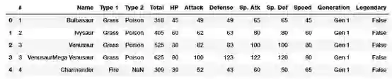 poke_df = pd.read_csv('datasets/Pokemon.csv', encoding='utf-8') poke_df.head()