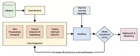 任何智能系统基本上都由一个端到端的管道组成,从获取原始数据开始,利用数据处理技术从这些数据中获取、处理和设计有意义的特征和属性。然后我们通常利用统计模型或机器学习模型等技术对这些特征进行建模,如果有必要,根据手头要解决的问题部署此模型,以便将来使用。本文描述了一种典型的基于CRISP-DM工业标准过程模型的标准机器学习流水线。