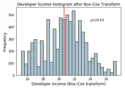 ax.text(24, 450, r'$\mu$='+str(income_boxcox_mean), fontsize=10)