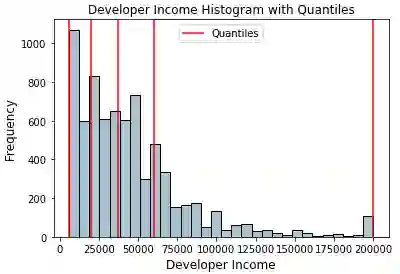 ax.set_title('Developer Income Histogram with Quantiles',