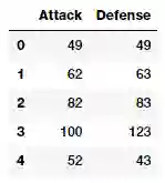 atk_def = poke_df[['Attack', 'Defense']]