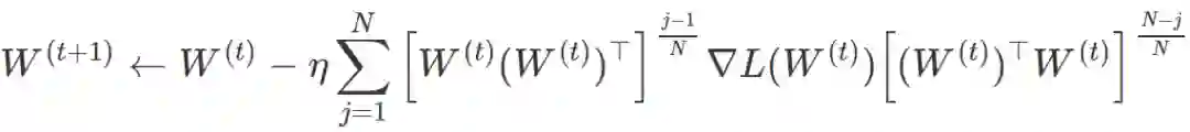 我们在经验上进行了验证,发现这个由分析得出的更新规则(对经典线性模型)实际上可以用于深度网络的优化,在理论上我们可以通过一系列步骤来解释它。我们发现,应用在 ∇L(W) 梯度上的变换(从左边乘上