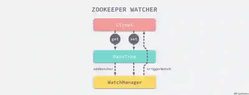 Zookeeper 中的所有数据其实都是由一个名为 DataTree 的数据结构管理的,所有的读写数据的请求最终都会改变这颗树的内容,在发出读请求时可能会传入 Watcher 注册一个回调函数,而写请求就可能会触发相应的回调,由 WatchManager 通知客户端数据的变化。