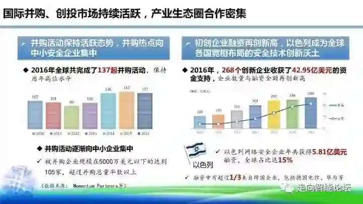 国际并购、创投市场持续活跃,产业生态圈合作密集。2016年全球共完成了137起并购活动,保持历年高位水平;并购活动逐渐向中小企业集中,被并购企业规模在5000万美元以下的达到105家,超过并购总量半数以上;2016年,268个创新企业收获了42.95亿美元的资金支持,企业数量与融资金额再创新高。