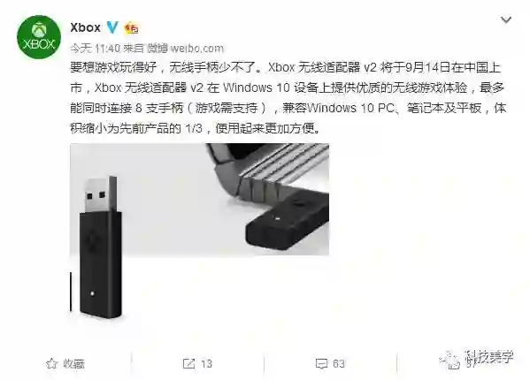 此前外媒消息称Xbox新款无线适配器跳票到2018年,不过今天Xbox官方微博宣布,Xbox 无线适配器 v2 将于9月14日在中国上市。