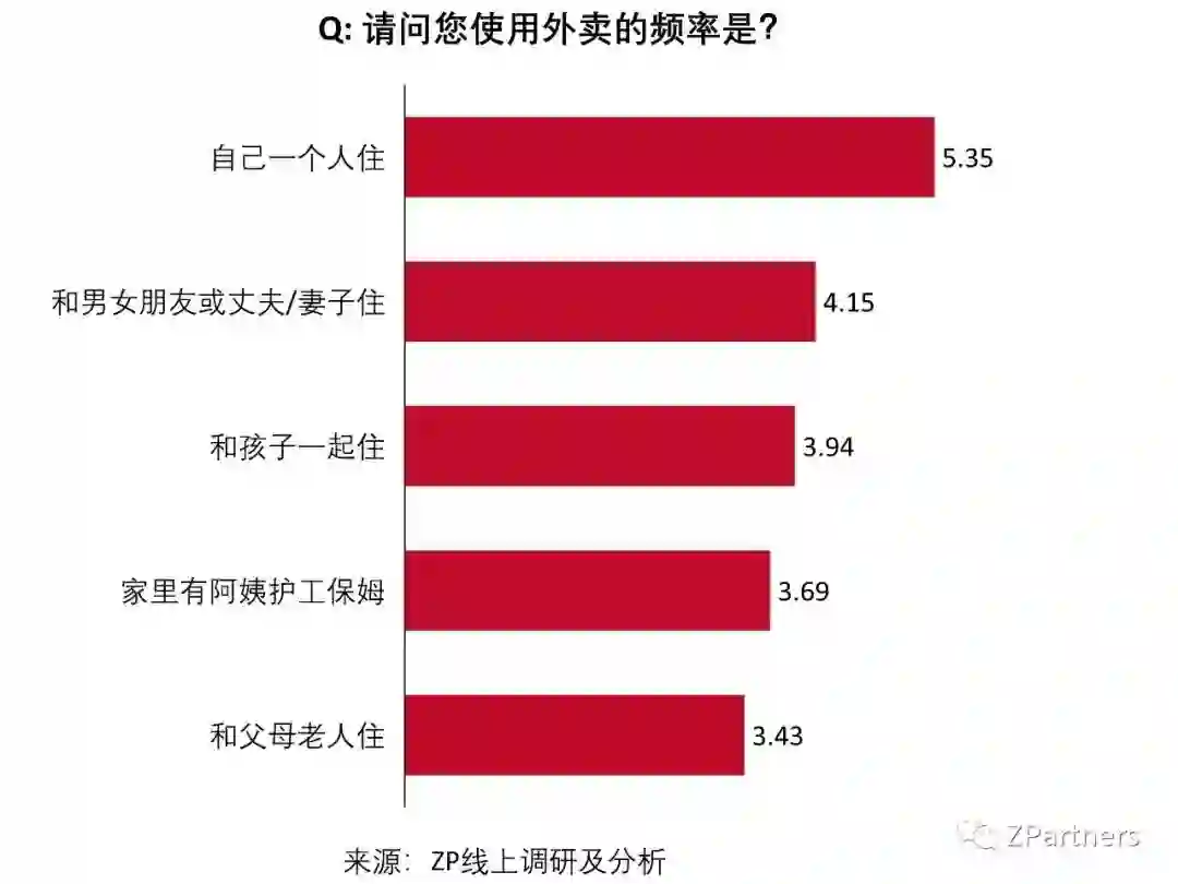 调研结果发现,在有外卖习惯的用户中,叫外卖频次最低的是和老人住在一起的用户。也就是说,爹妈才是外卖真正的对手。