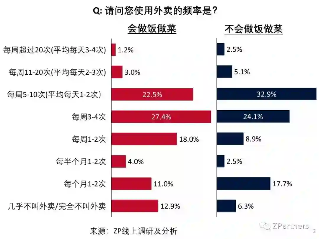 ZP通过调研发现,互联网用户中没有做菜能力的仅占16%,并不是有厨艺的用户就绝缘外卖餐饮。