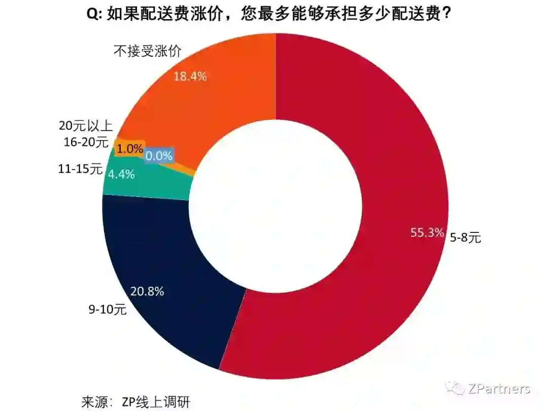 用户对于配送费上涨非常宽容:调研结果显示用户愿意承担一倍的运费上涨,从3.5元到7元,都不会影响自己的体验。我们深度访谈了几十位外卖用户,如果配送费涨价超出你的心理预期你会不会不点外卖了?答案非常一致——我们离不开外卖,因为懒。
