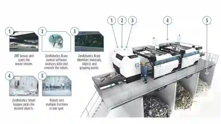 同样这么做得还有芬兰公司ZenRobotics机器人,在美国Recon废物服务公司中,安装了人工智能回收系统Heavy Picker,可以抬起60磅重的物体,能够整理建筑垃圾,将其分类成金属、木头、石头等,然后投入循环利用。目前,苏州绿和公司也引入了该技术。