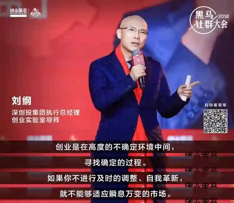 i黑马讯(常皓靖)12月15日消息,由创业黑马&黑马学院主办的2018黑马社群大会举行,深创投集团执行总经理、黑马实验室导师刘纲出席活动并发表演讲。