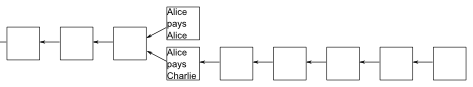 每个区块都连着上一个区块,这也是"区块链"这个名字的由来。