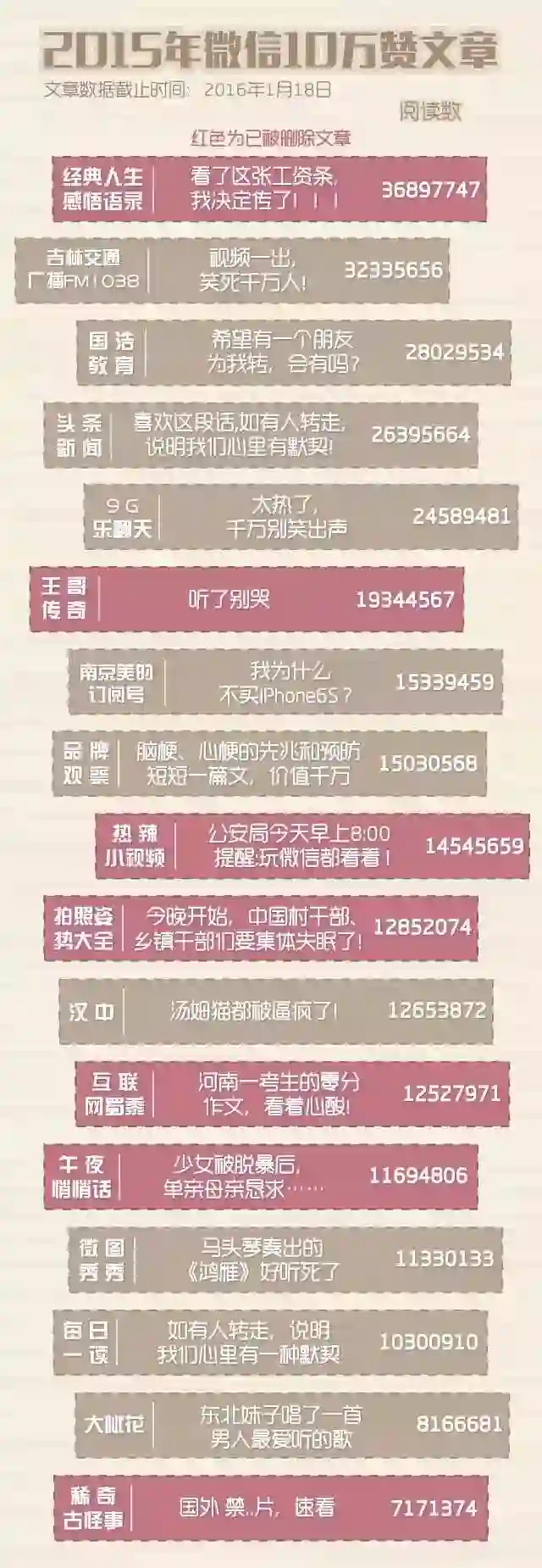 这是新榜统计的2015年点赞数最高的文章,看了标题你也应该明白,大部分都是下面这种粗制滥造的劣质文章: