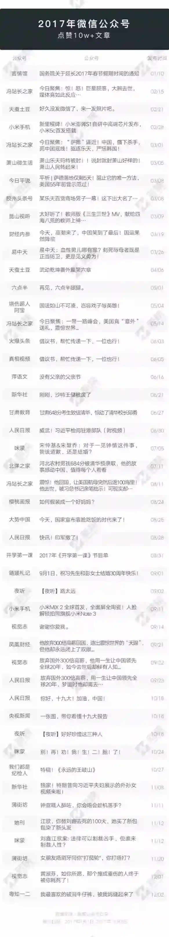 到2017年,大家都在惊呼“微信公众号”已死时,当年的点赞榜上文章已经大多出自有组织的媒体大号之手: