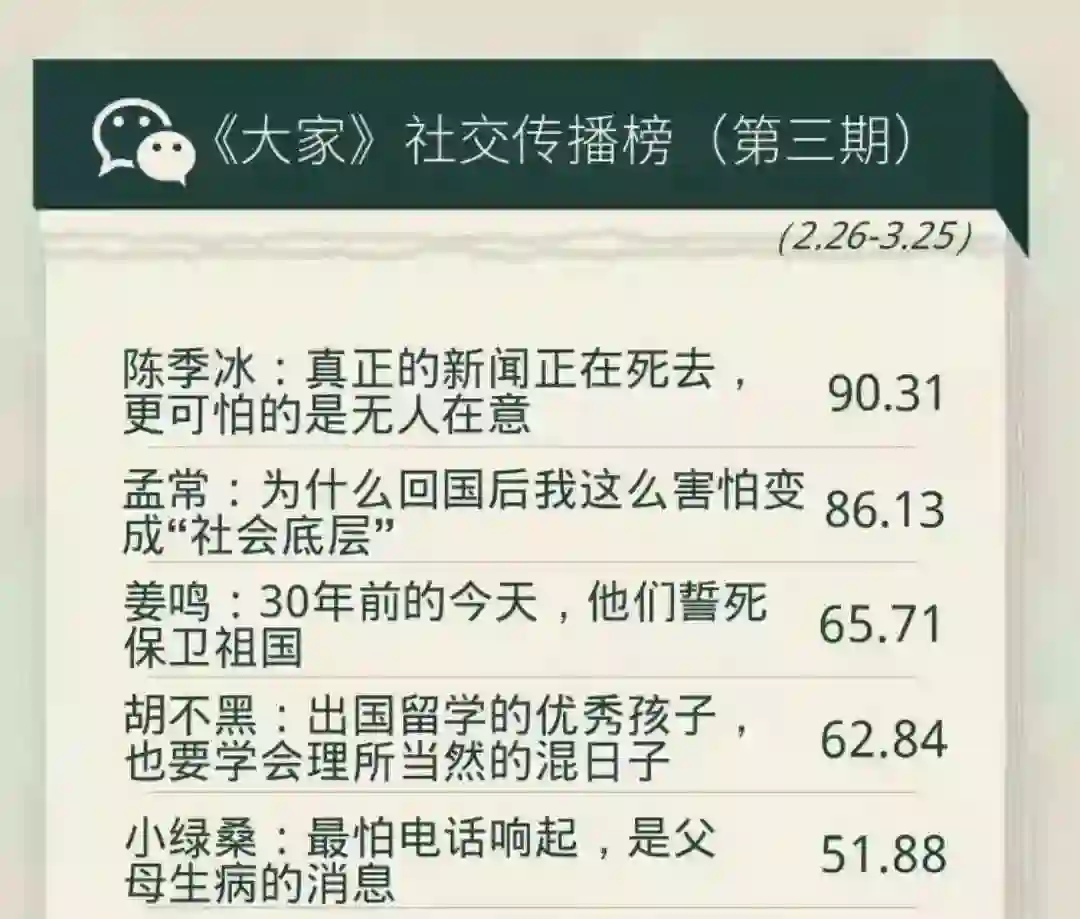 仔细看,其中有一篇是“微信人民的老朋友”咪蒙的成名作《致贱人》,可惜连前十都进不了,因为话题还不够“大众化”,标题还不够“震惊”,情绪挑逗还不够“酸爽”。