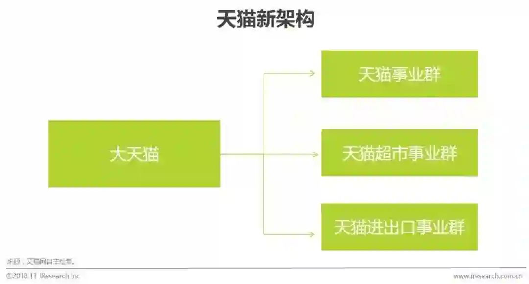 而在此次调整中,天猫将升级成为“大天猫”,形成天猫事业群、天猫超市事业群、天猫进出口事业部三大板块: