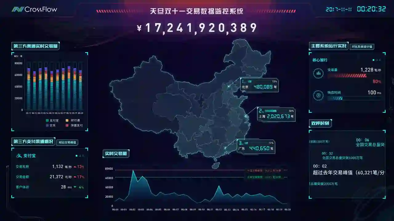 2016年的双十一之夜,天旦的几十位工程师精神满满,与银行的工作人员运筹帷幄、群策群力,为“双十一”狂欢交易通宵保障。而这一长串几十家的保障名单,几乎重叠了支付宝的交易榜单。