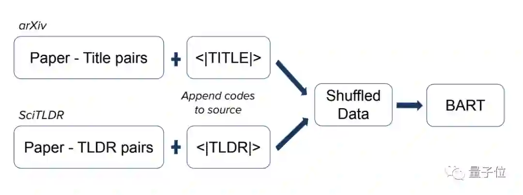 将这两个数据库分别加上控制码“<TITLE>”和“<TLDR>”之后进行混合,送入BART模型。