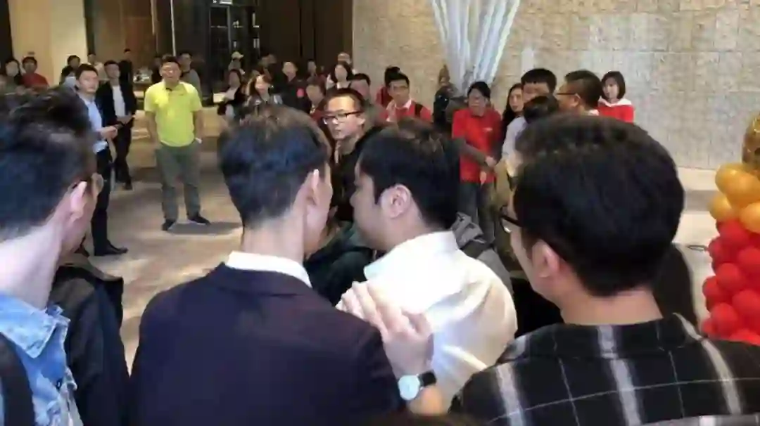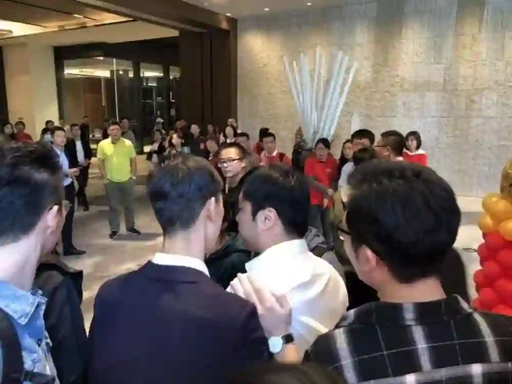 李亮九点多到的酒店,发现现场异常火爆,原来除了置业顾问、购房者、保安之外,还有一群老业主在那儿,他们手里举着打印好的二维码,让李亮扫码进群,了解下“黑心开发商”的“无良”。