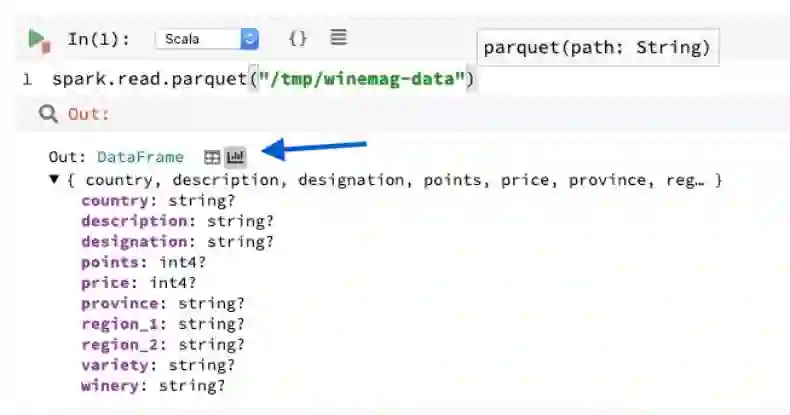 和 Jupyter Notebook 不同,Polynote 本身支持多种语言编程。除了对 Scala 语言的一级支持,Polynote 还在一个笔记本内支持多语言运行,包括 Scala、Python、SQL 和 Vega,而且这些语言都具备自动补全功能。