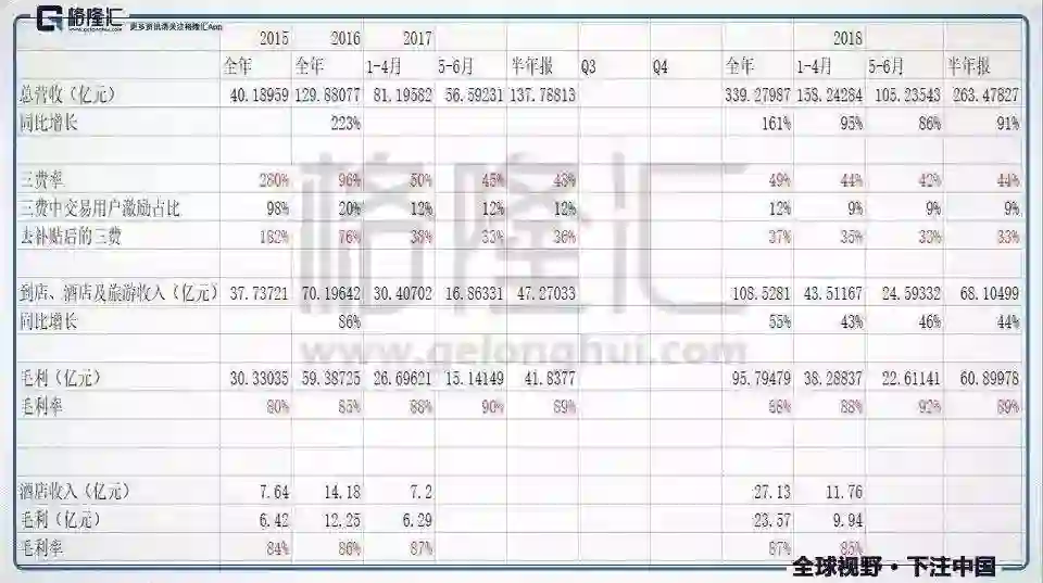 餐饮外卖作为低毛利超级流量入口业务,到店酒店及旅游是高毛利盈利业务,新业务及其他提高发展空间(对于互联网公司来讲,流量入口级的业务,一般实行软件或内容免费、硬件或服务低毛利的发展与竞争策略)