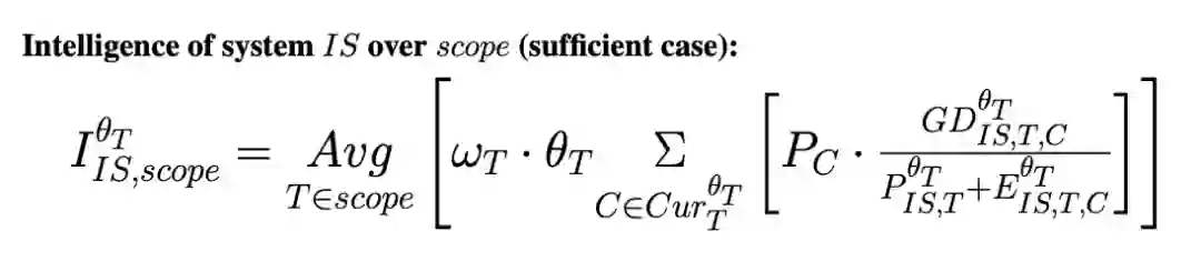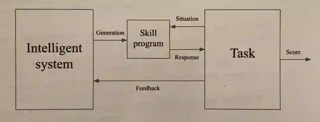下面是“技能获取效率”的概述。“Task”可以是国际象棋,“Situation”是一个棋盘位置,而“skill program”是一个固定的国际象棋引擎。可以将智能系统看作是不同任务的程序综合引擎。