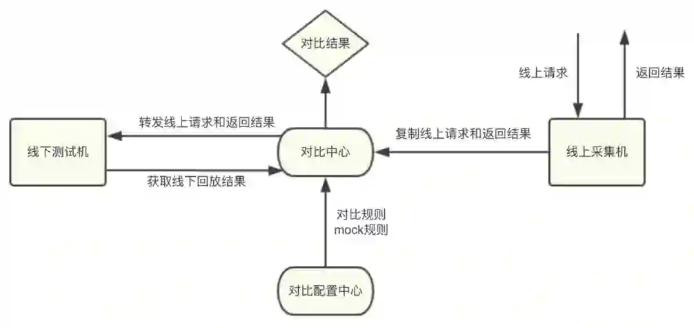 引流对比测试是目前阿里内部常用的一种回归测试手段,它基于线上真实流量做采集、回放、对比,通过对比结果评估代码变更是否影响了线上链路和功能。通过这种方案,极大地降低了手工构造测试数据的成本: