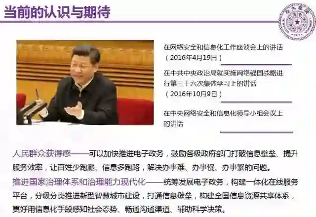 第三个重大事件发生于2016年4月19日,习近平总书记关于信息安全和信息化有一个座谈会,他有一个高屋建瓴的讲话。时隔十年之后,我们国家又要重新思考国家电子政务总体方案的一个根本性的因素。