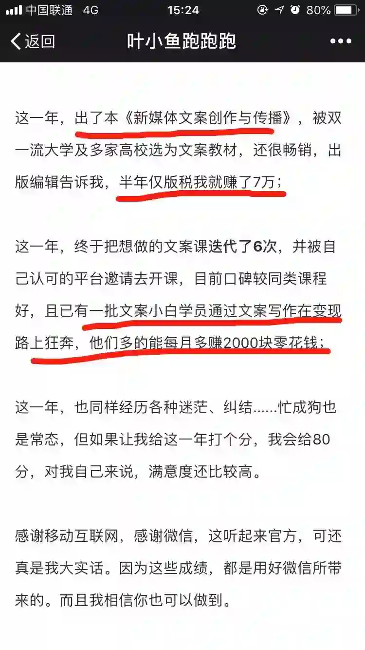 这段话,是4周文案训练营带班导师@小鱼 在自己公众号里记录的。