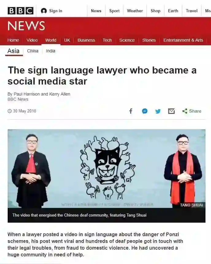 唐帅说:“万一全中国真的只有我一个手语律师,我不做,良心过不去。”