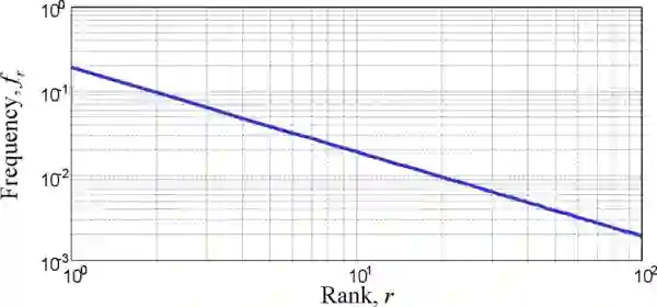 它以语言学家齐普夫命名,齐普夫在20世纪早期发现英文中词频的规律——最常用的”The”占所有英文文本的7%,第二常用的单词”of”占比则3.5%,第三位的”and”占比为2.8%…….符合7%的1 倍、1 / 2倍、1 / 3倍……这一规律。