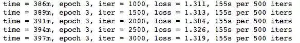 示例训练输出:经过几天的训练后,模型的损失函数收敛到了大约1.3。