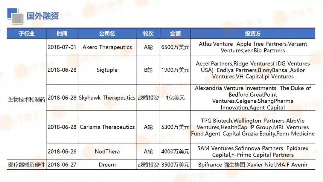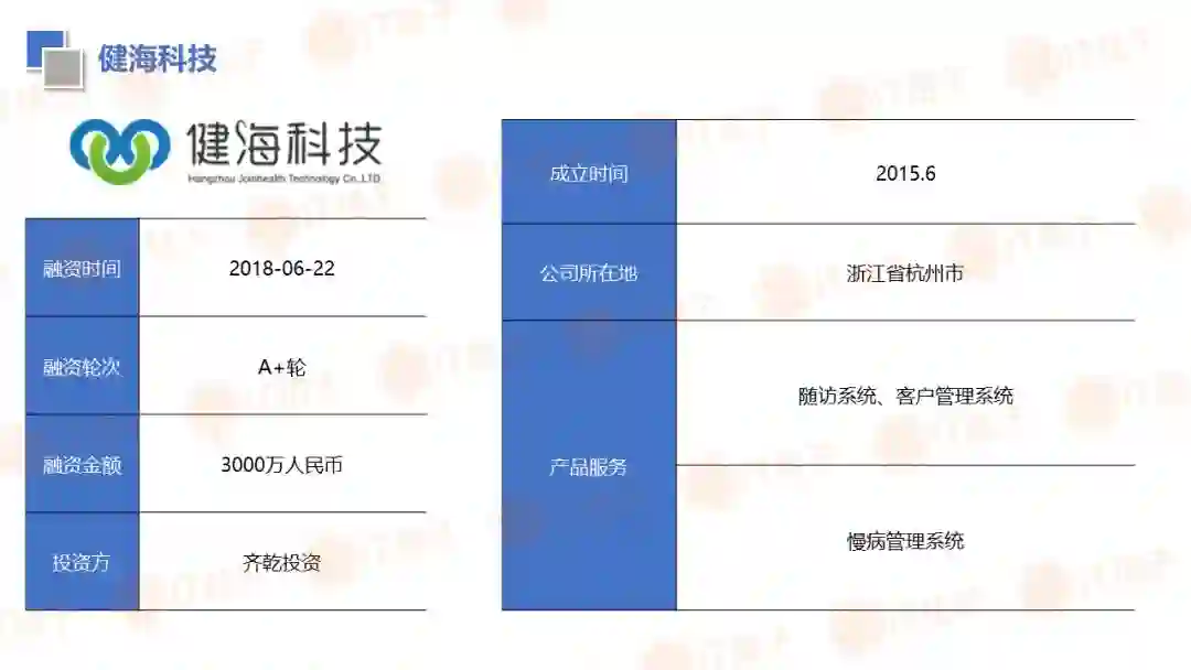 IT 桔子也顺应大健康投资热潮推出了医疗健康周报和项目拆解两个新栏目。IT 桔子医疗健康周报将从投融资动作、政策风向、业内动态等解读行业最新变化。项目拆解将从企业团队建设、产品技术、市场规模、商业模式等方面挖掘企业亮点与价值,为医疗创投提供参考。