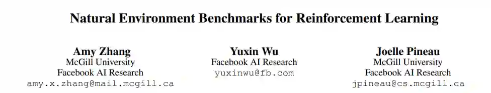 为解决此问题,本文提出了3个新的基准RL域体系,包含自然世界复杂性的同时仍然支持快速广泛的数据采集,还允许通过公平的训练/测试分离来描述泛化性能,并且容易比较和复制结果。作者通过这项工作向RL研究界提出挑战:要达到高标准的评估,就必须开发出更具鲁棒性的算法。