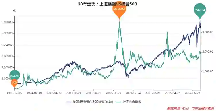 其实,A股的赚钱效应不差。1990年12月19日至今(2020年10月9日),上证综指从100点涨至3272点,涨幅为32.7倍;同期标普500指数从311点涨至3477点,涨幅仅为11.2倍。