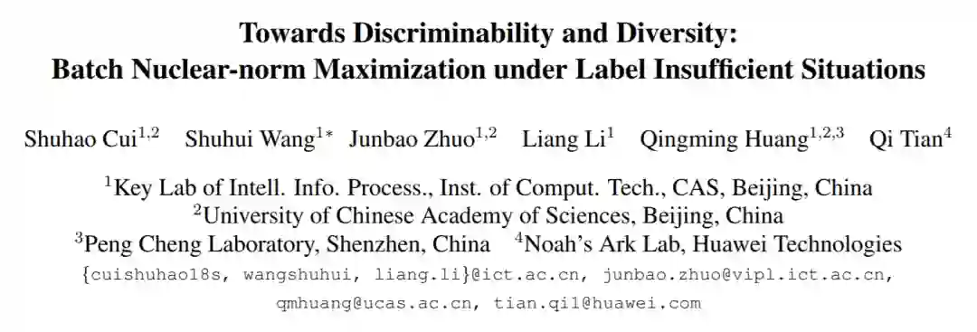 本文主要详细解读CVPR 2020 Oral文章:《Towards Discriminability and Diversity:Batch Nuclear-norm Maximization under Label Insufficient Situations》。这篇文章探讨了在标签不充分情形下的深度学习训练(比如unsupervised domain adaptation, semi-supervised),并且用十分简洁的形式约束了预测的判别性和多样性。