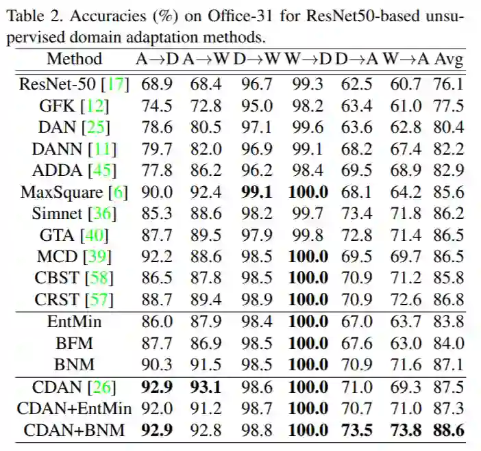 该方法 Batch Nuclear-norm Maximization(BNM),可以用于三种标签不充分的情景:unsupervised domain adaptation, semi-supervised learning, unsupervised domain recognition。