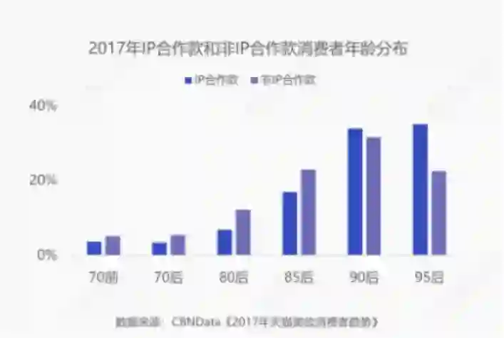 第三,联名共赢。根据CBNData《2017年天猫美妆消费者趋势》报告显示,只有90后和95后群体对于IP合作款商品的消费高于非IP合作款,也就是说,IP合作款的商品有巨大潜力。