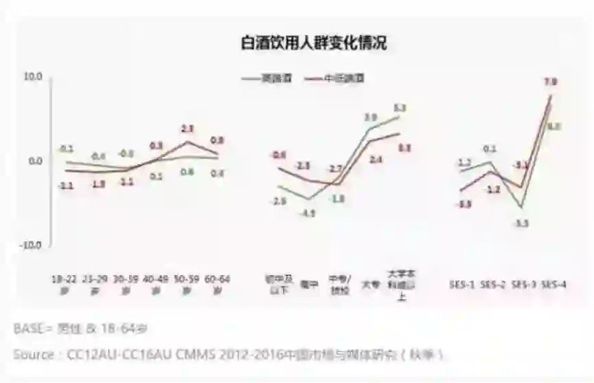 江小白自2012年创立品牌开始,便将目光聚焦于年轻人群体。根据CMMS《2012-2016中国市场与媒体研究(秋季)》的报告显示,中国白酒饮用人群集中在50-59岁的中年群体中。由此可见,当年的江小白将其消费者定位在了白酒消费的“小众群体”身上。