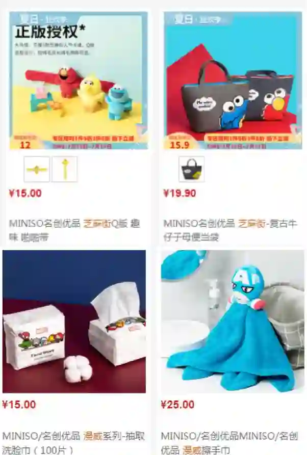 IP合作款也就是”联名款“,名创优品一直致力于生产此类商品,从动画形象芝麻街、皮卡丘到表情包Kakao Friends,再到与漫威合作生产的周边,即便背靠强大IP,但其商品价格并没有上涨,且销量十分可观。
