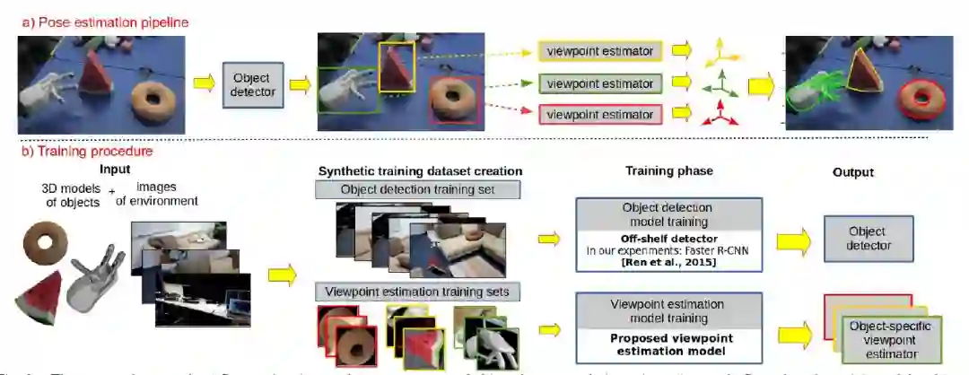 第二篇,提出了一种新型的结合CNN的鲁棒性和基于精细分辨率的3D位姿估计方法,该模型在由物体的3D模型自动生成的全标记的合成训练数据上进行训练。