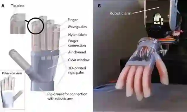 为此,笔者曾介绍过康奈尔大学设计的柔性机器人手,它利用弹性光波导作为传感器感知周围的物体。而这种“弹性体”传感器利用了软光刻技术和三维打印技术,便于大规模生产制造。