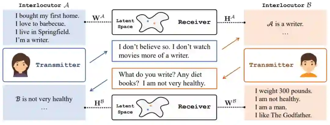 这篇论文提出了一个 Transmitter-Receiver 的框架来显式建模对话者之间的了解,其中 Transmitter 负责对话生成,而 Receiver 负责个性了解。在这个框架下,我们引入一个新颖的概念“相互个性感知”,来刻画对话者之间的信息交流,即对话者对彼此个性的了解程度。众所周知,高效的沟通能够让对话的双方充分了解并达成共识,所以相互个性感知的提升在一定程度上也代表了对话质量的提高。为了达成这个目标,我们首先按照传统的监督学习来训练Transmitter,然后让两个训练好的 Transmitter 通过互相对话进行自我学习(self-play)。在它们对话若干轮后,借助 Receiver 提供的个性感知奖励微调 Transmitter。
