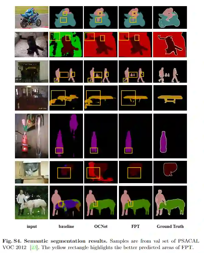 大量的实验表明,FPT可以极大地改善传统的检测/分割网络:1)在MS-COCO test-dev数据集上,用于框检测的百分比增益为8.5%,用于遮罩实例的mask AP值增益为6.0%;2)对于语义分割,分别在Cityscapes和PASCAL VOC 2012 测试集上的增益分别为1.6%和1.2%mIoU;在ADE20K 和LIP 验证集上的增益分别为1.7%和2.0%mIoU。