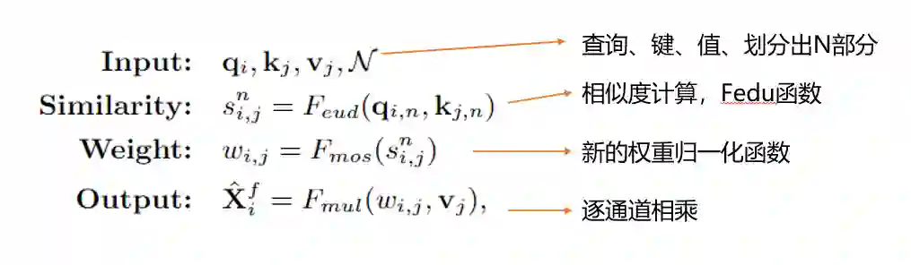 自变换器(Self-Transformer,ST)的目的是在同一张特征图上捕获共同发生的对象特征。如图3(a)所示,ST是一种修改后的非局部non-local交互,输出的特征图与其输入特征图的尺度相同。与其他方法区别在于,作者部署了Mixture of Softmaxes(MoS)作为归一化函数,事实证明它比标准的Softmax在图像上更有效。具体来说,首先将查询q和键k划分为N个部分。然后,使用Fsim计算每对图像的相似度分数。基于MoS的归一化函数Fmos表达式如下: