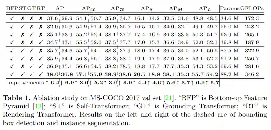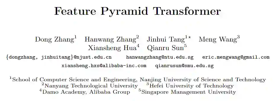 跨空间和尺度的特征交互是现代视觉识别系统的基础,因为它们引入了有益的视觉环境。通常空间上下文信息被动地隐藏在卷积神经网络不断增加的感受野中,或者被non-local卷积主动地编码。但是,non-local空间交互作用并不是跨尺度的,因此它们无法捕获在不同尺度中的对象(或部分)的非局部上下文信息。为此,本文提出了一种在空间和尺度上完全活跃的特征交互,称为特征金字塔Transformer(FPT)。它通过使用三个专门设计的Transformer,以自上而下和自下而上的交互方式,将任何一个特征金字塔变换成另一个同样大小但具有更丰富上下文的特征金字塔。FPT作为一个通用的视觉框架,具有合理的计算开销。最后,本文在实例级(即目标检测和实例分割)和像素级分割任务中进行了广泛的实验,使用不同的主干和头部网络,并观察到比所有baseline和最先进的方法一致的改进。