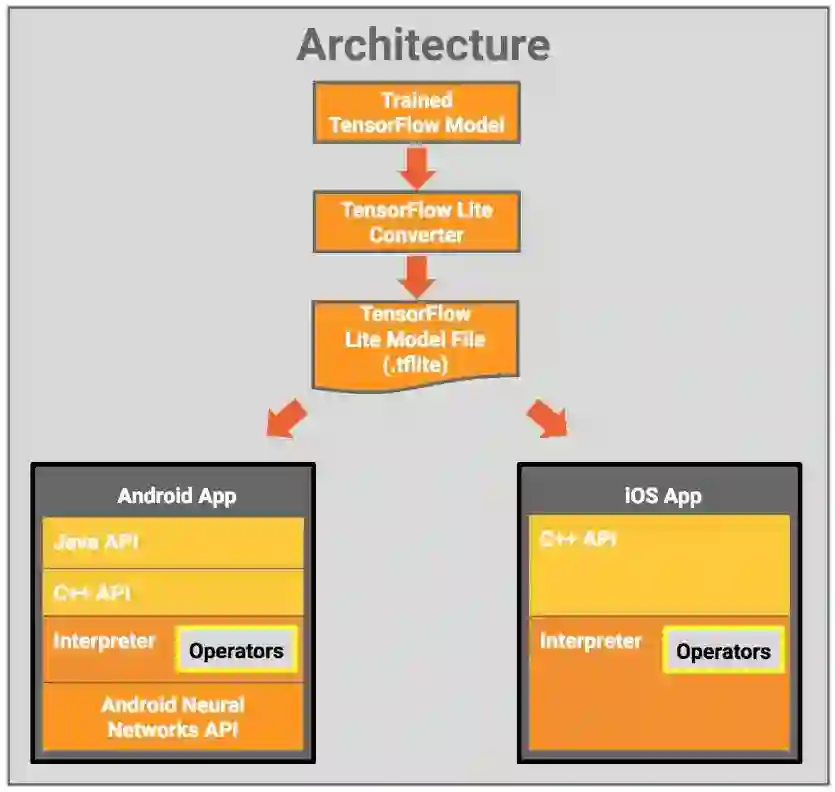 C++ API:加载 TensorFlow Lite 模型文件,启动编译器。安卓和 iOS 设备上均有同样的库。