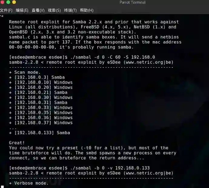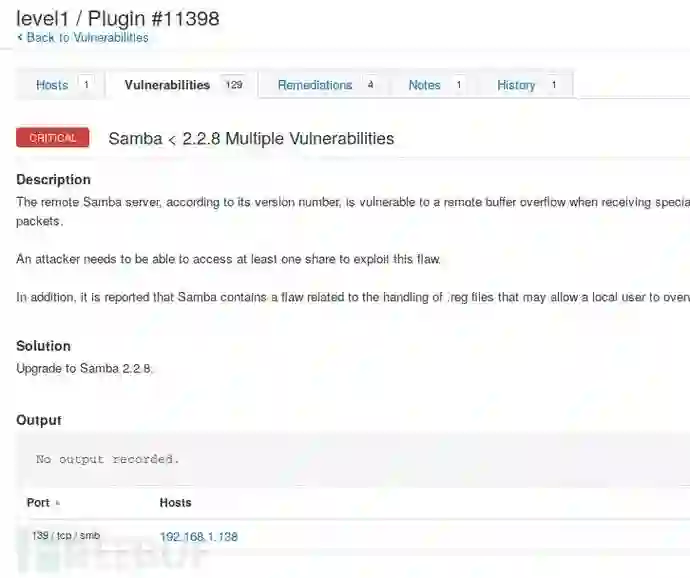 可以看到漏洞还是比较多的,本文以samba为突破口做进一步渗透,