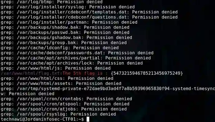 grep -r “The 5th flag is :” /var/ (此次关键字是结合前面几个flag规律)