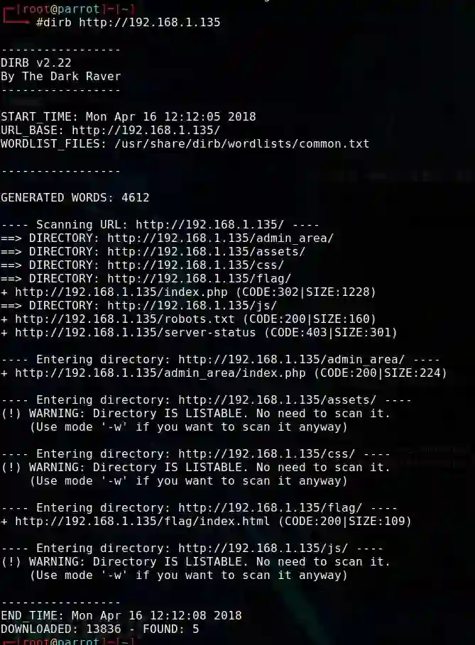 我们打开http://192.168.1.135 使用御剑等神器跑跑目录,本菜使用dirb神器