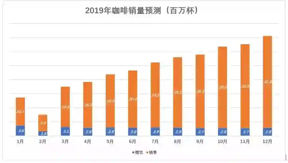 预计到2019年12月,瑞幸咖啡单月销量可达5410万杯,赠饮280万杯,合共5690万杯。
